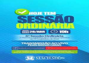 Participe da sessão da Câmara de Vereadores de Machados — ao vivo pelas redes sociais ou presencialmente no auditório. Sua presença faz a diferença!
