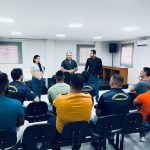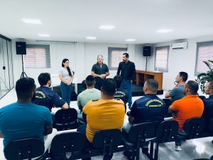 A Guarda Civil Municipal de Machados é recebida pelo vereador João Morais, Presidente da Câmara e pela Vereadora Elis Cunha, 1ª Secretaria, juntos com o Presidente da Associação dos Guardas Civis Municipais de Pernambuco Etevaldo Genuíno na sede Câmara de Vereadores.