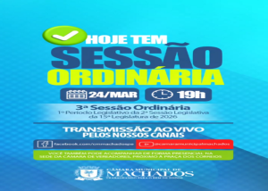 ACOMPANHE AO VIVO! Participe da sessão da Câmara de Vereadores de Machados — ao vivo pelas redes sociais ou presencialmente no auditório. Sua presença faz a diferença! – Câmara Municipal de Machados