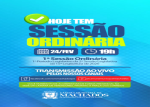 Participe da sessão da Câmara de Vereadores de Machados — ao vivo pelas redes sociais ou presencialmente no auditório. Sua presença faz a diferença!